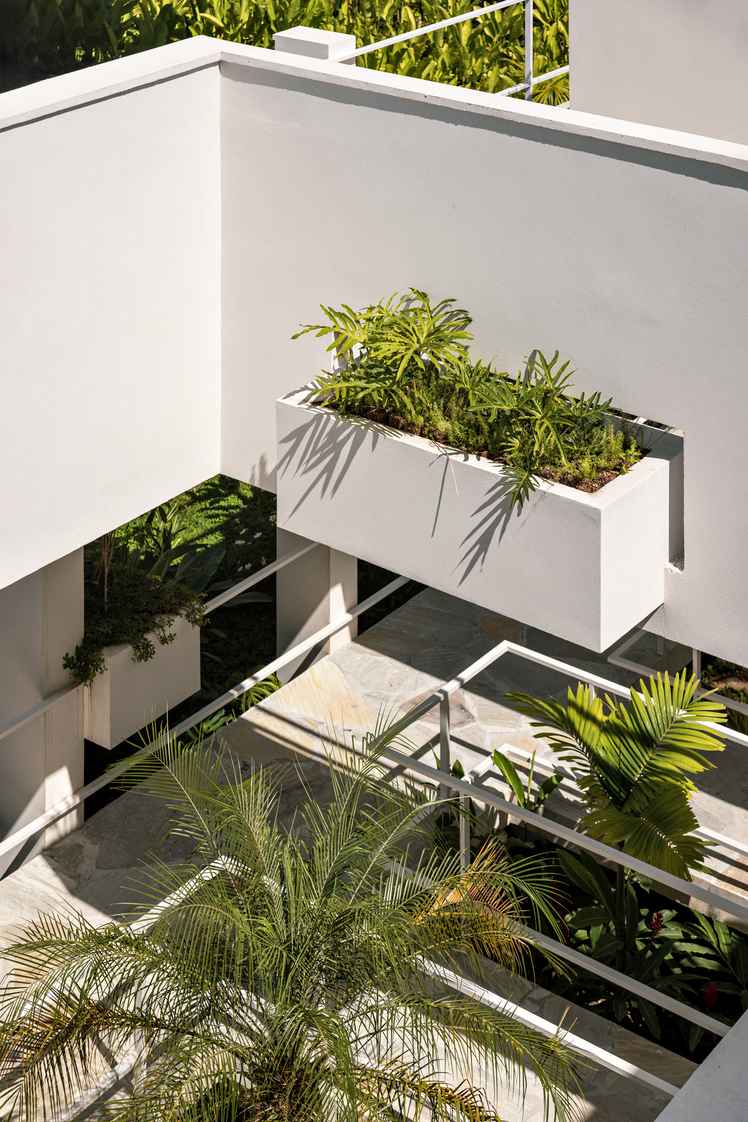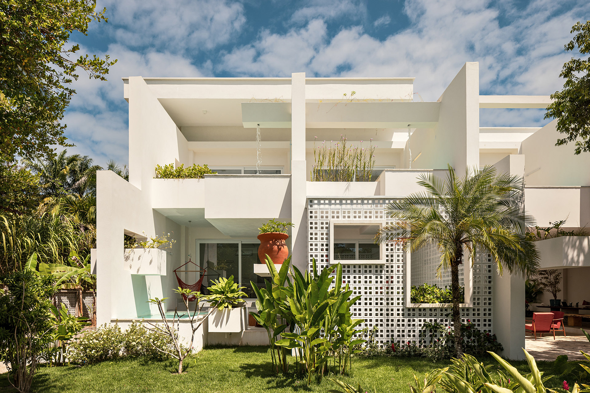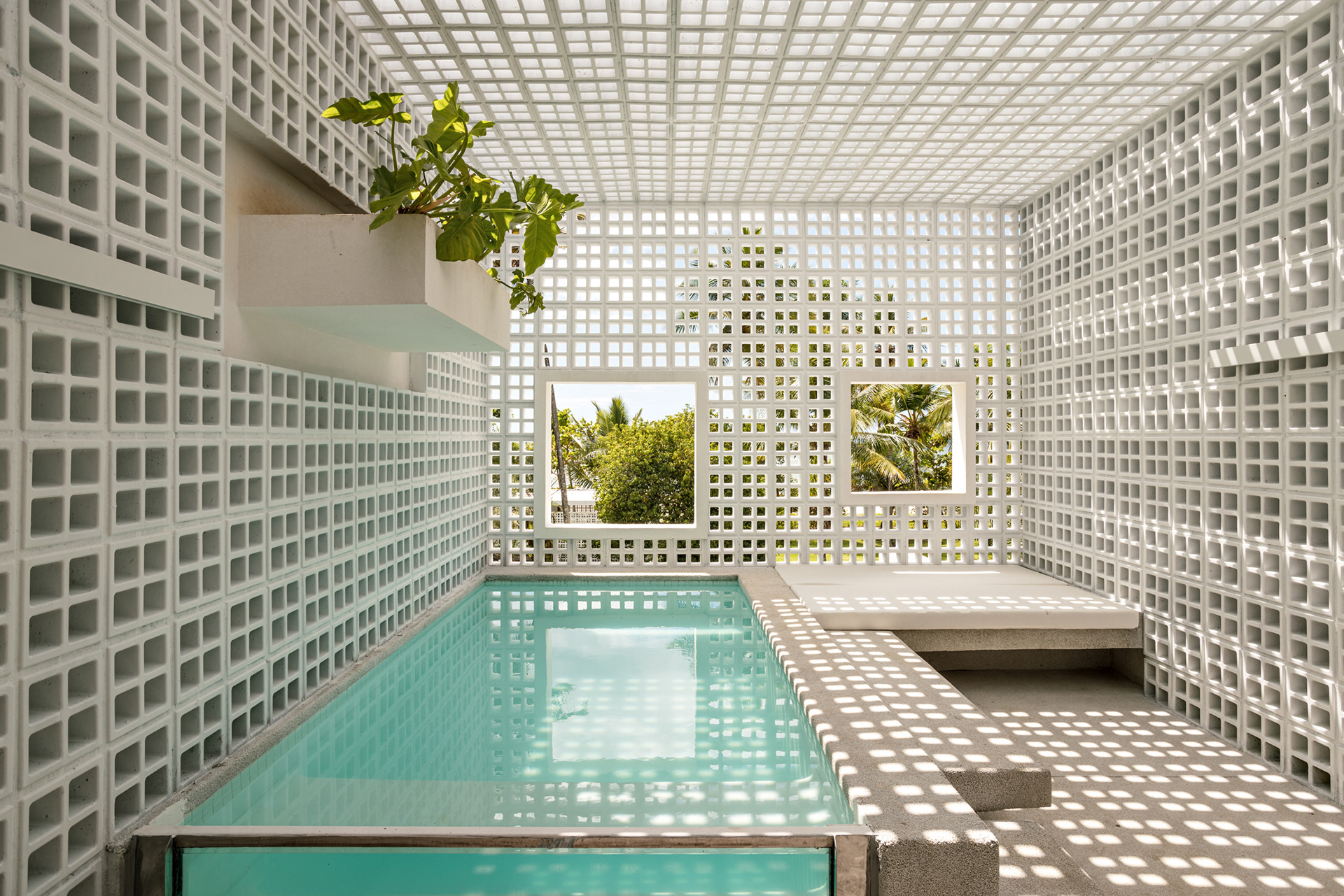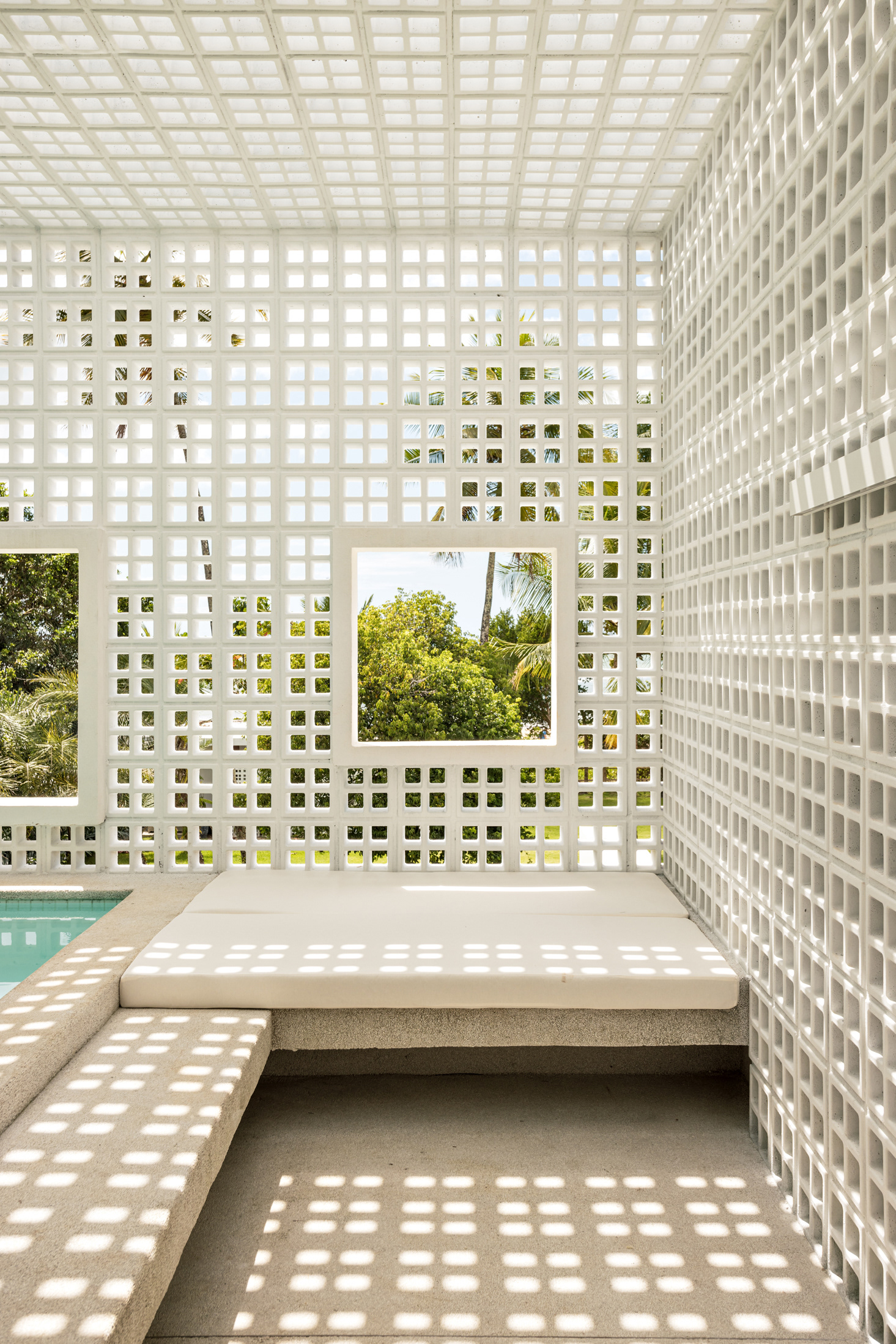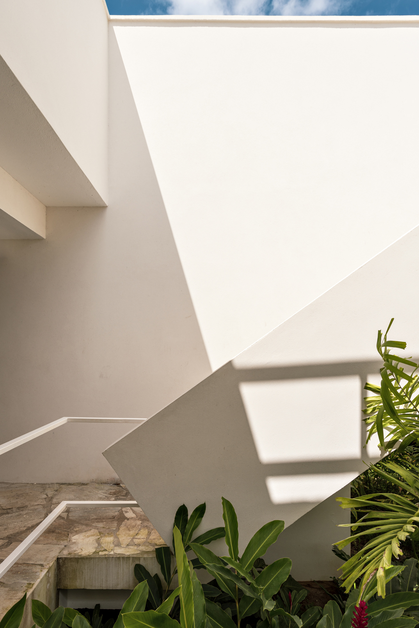 O resultado é uma construção complexa que explora a diversidade de elementos de forma inusitada, permitindo experimentos pontuais, como varanda totalmente envolta em cobogós, mirante, piscinas com formatos pensados para um casal e assim por diante.