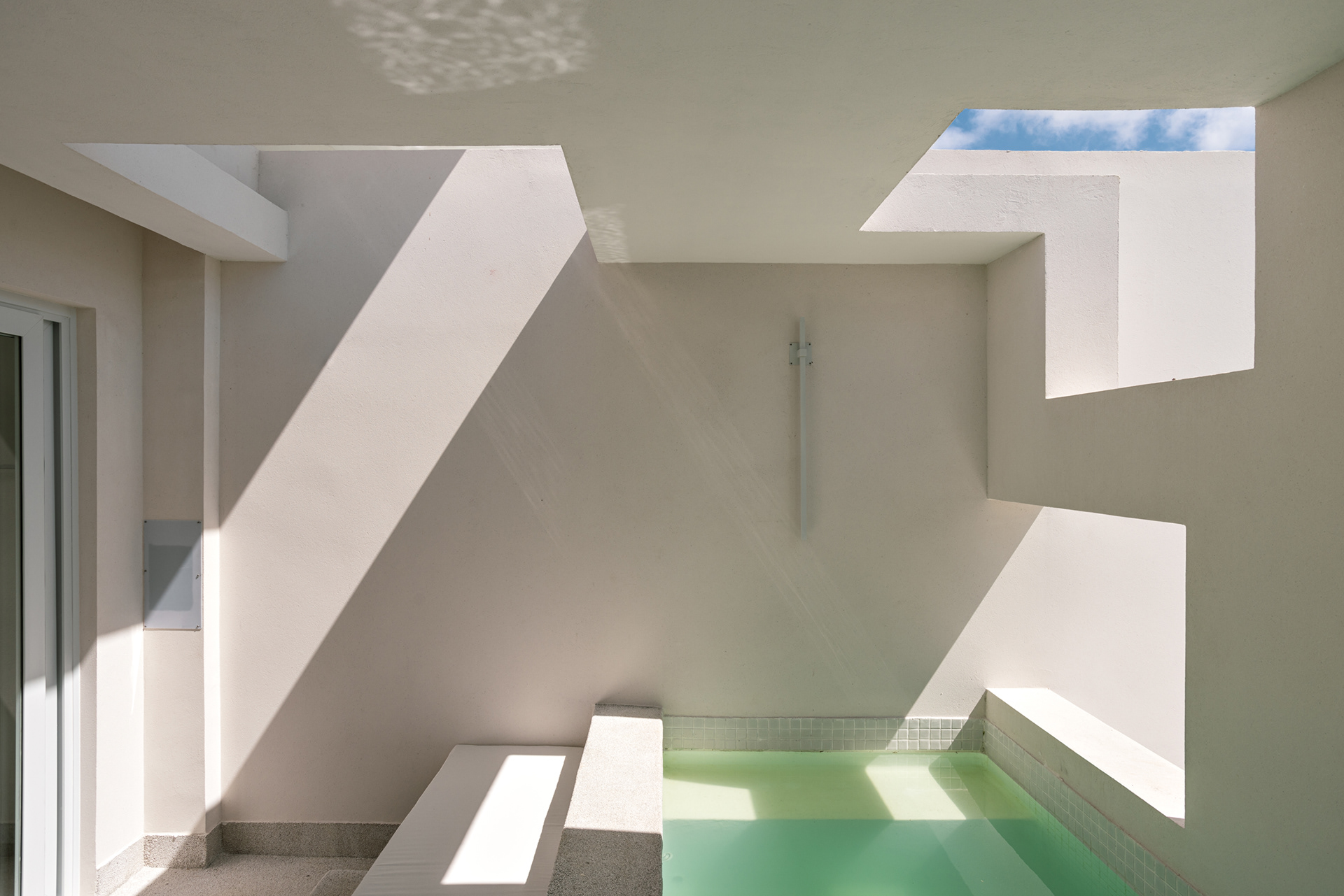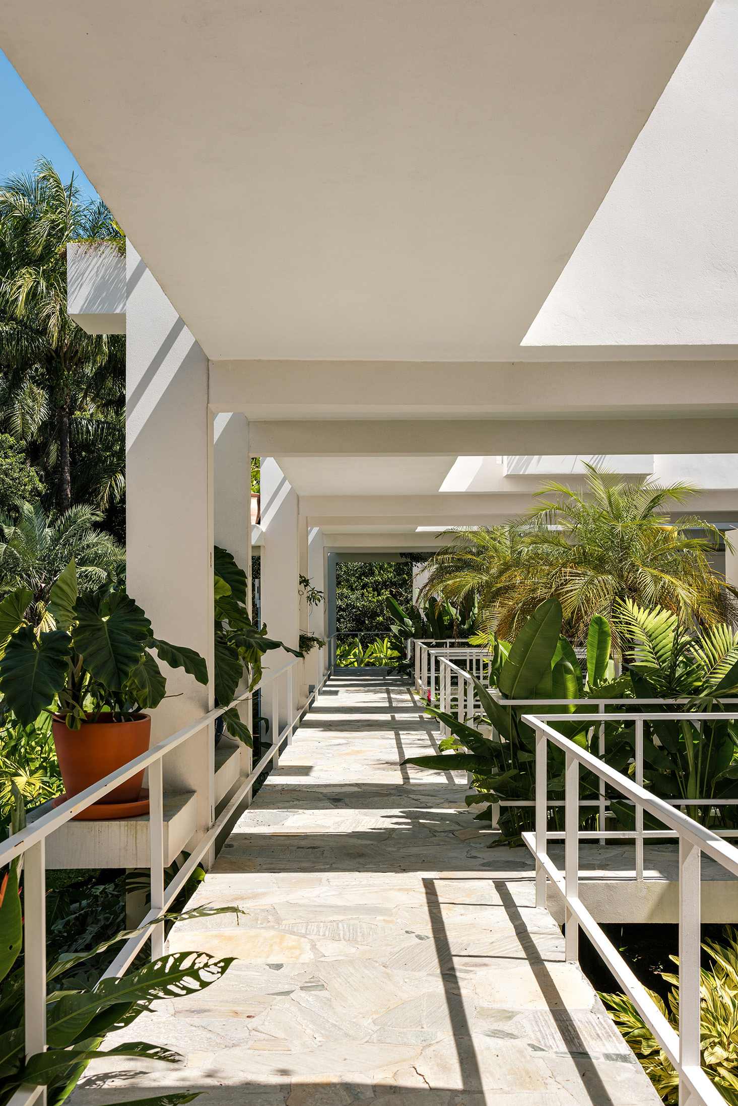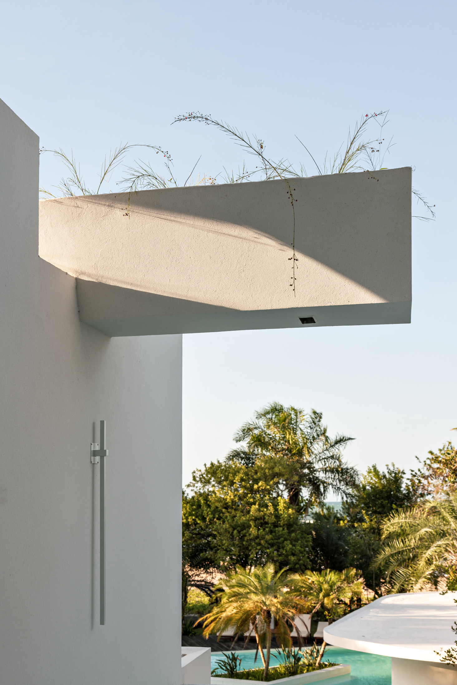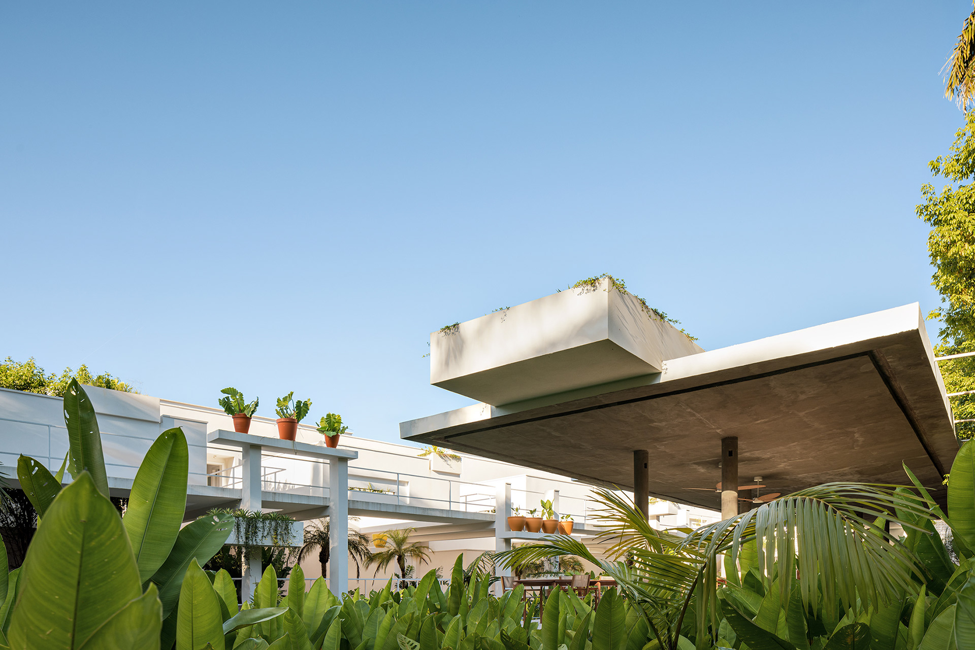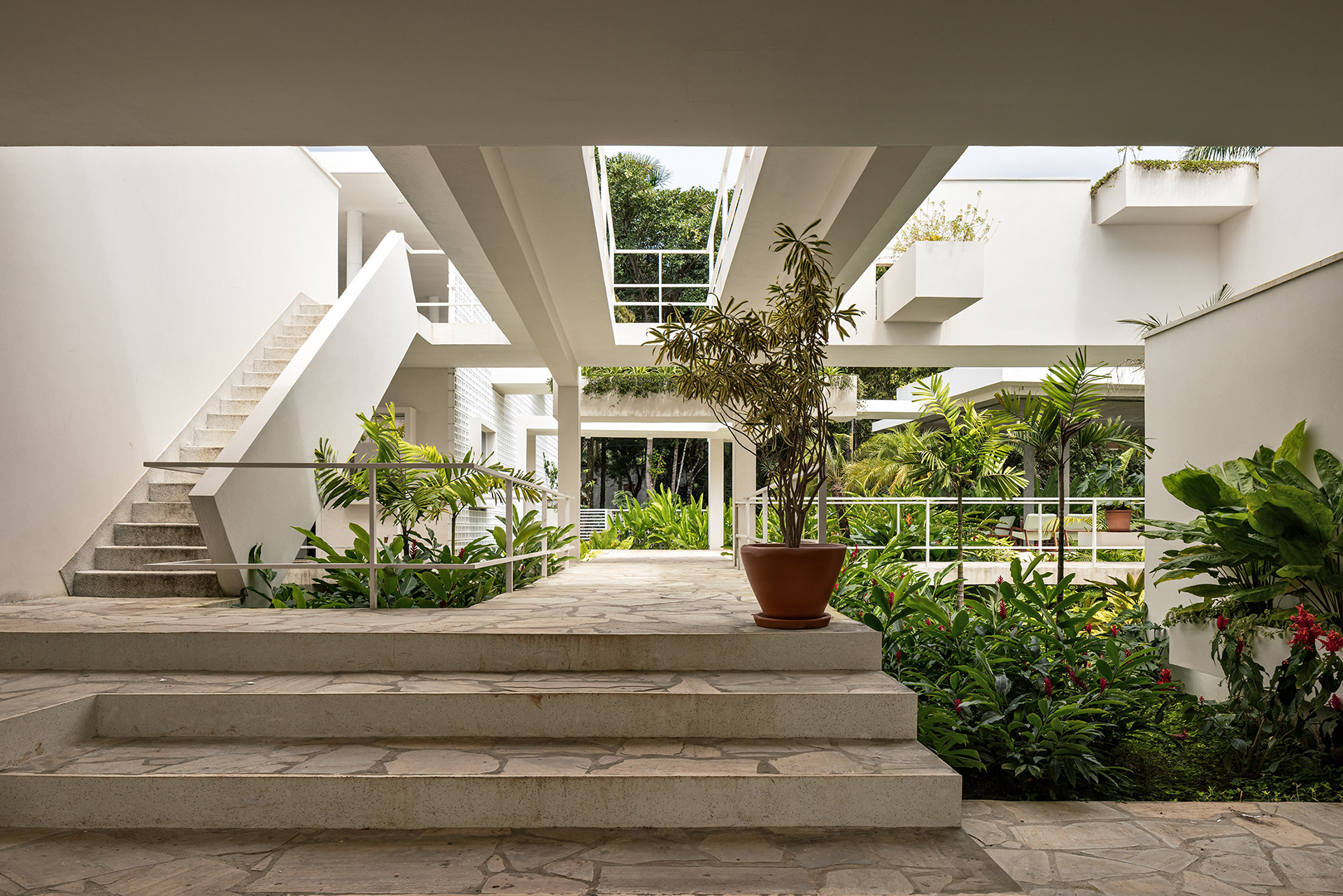 O resultado é uma construção complexa que explora a diversidade de elementos de forma inusitada, permitindo experimentos pontuais, como varanda totalmente envolta em cobogós, mirante, piscinas com formatos pensados para um casal e assim por diante.