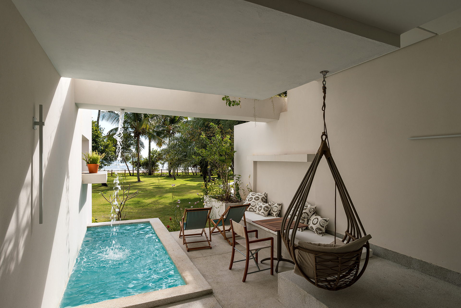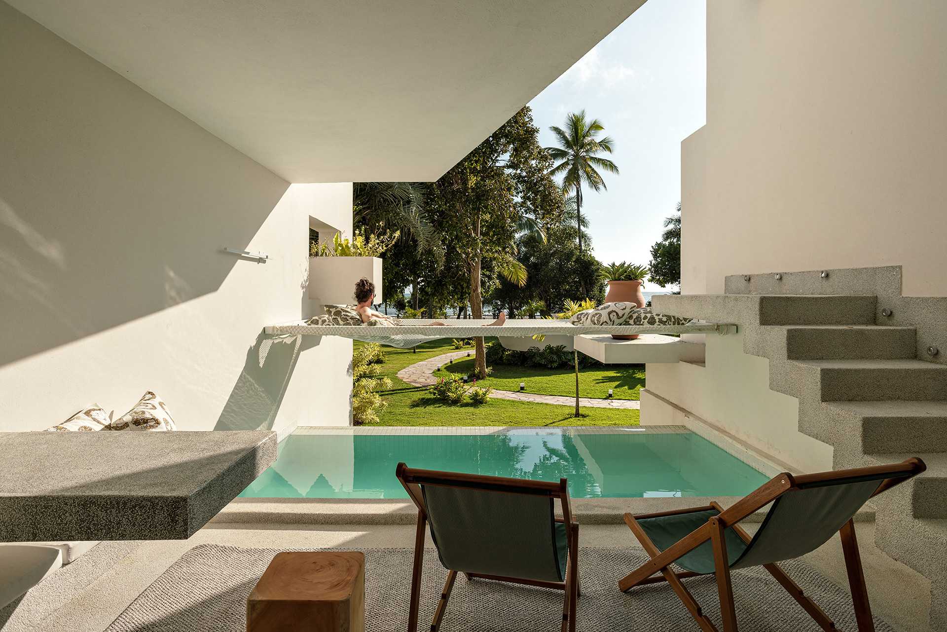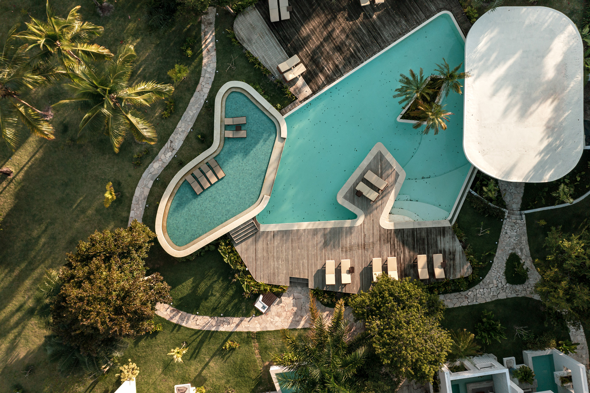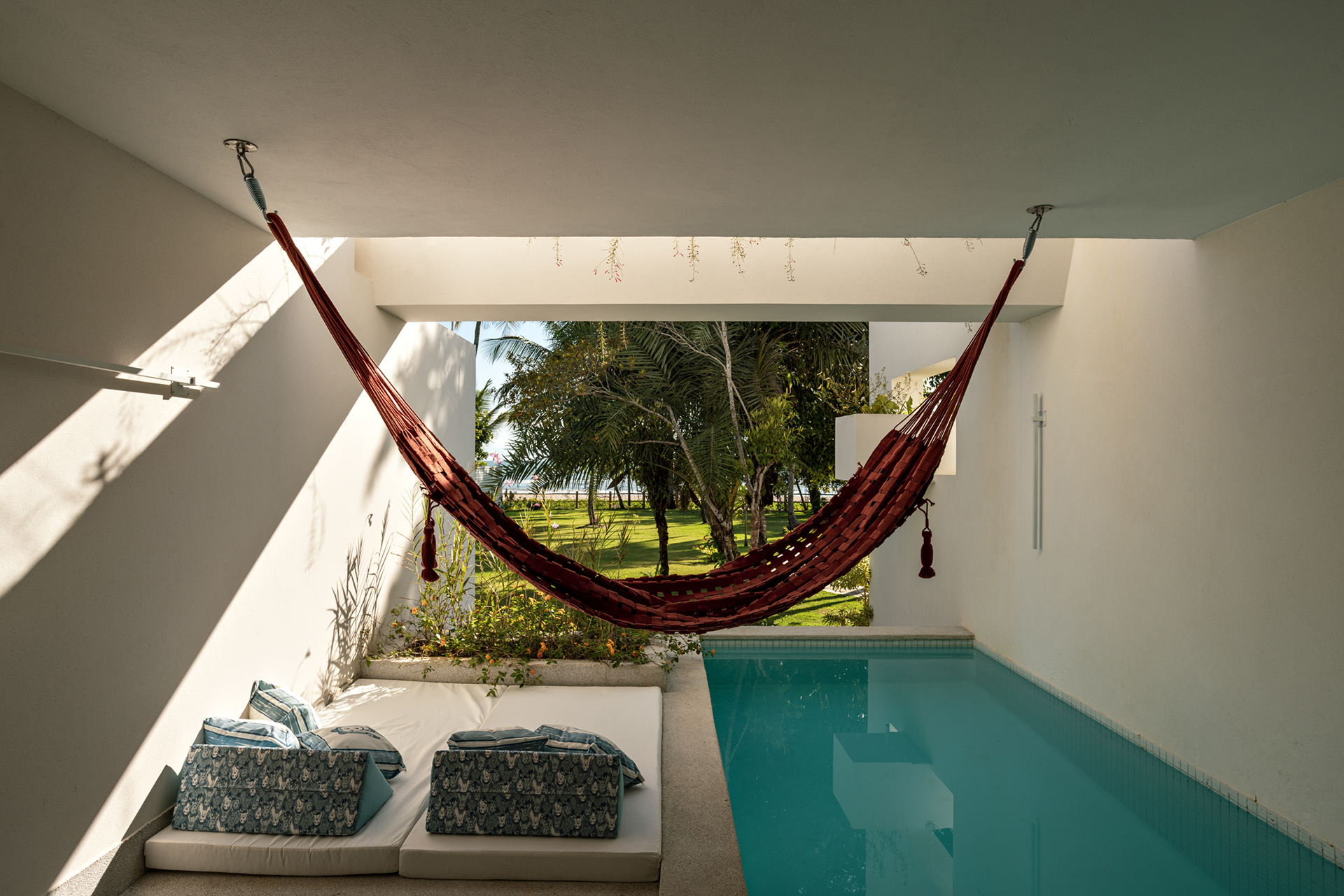 As demandas principais desse projeto foram: todos os quartos iguais com piscinas privativas, voltados para a vista do mar e o uso de concreto moldado in loco e alvenaria, dada a dificuldade da chegada de outros materiais à ilha.