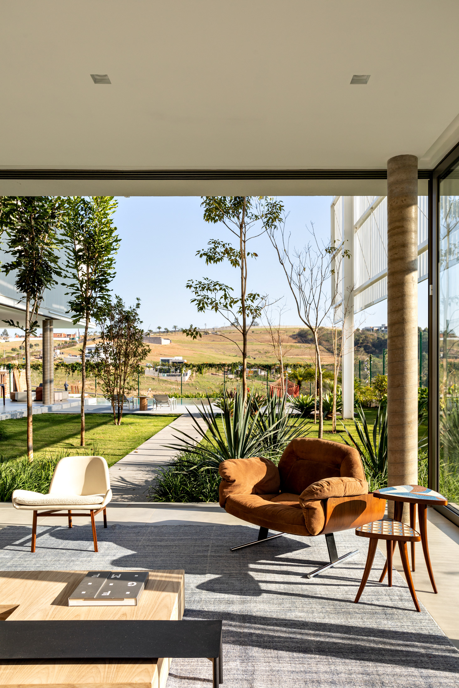 O terreno, no interior paulista, apresenta acentuado declive e fundos com fachada norte, ao mesmo tempo que uma interessante mata de preservação se encontra a sul, do outro lado da via de acesso da fachada principal.
