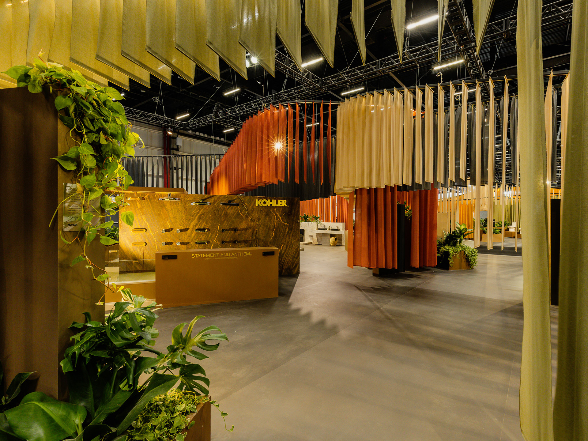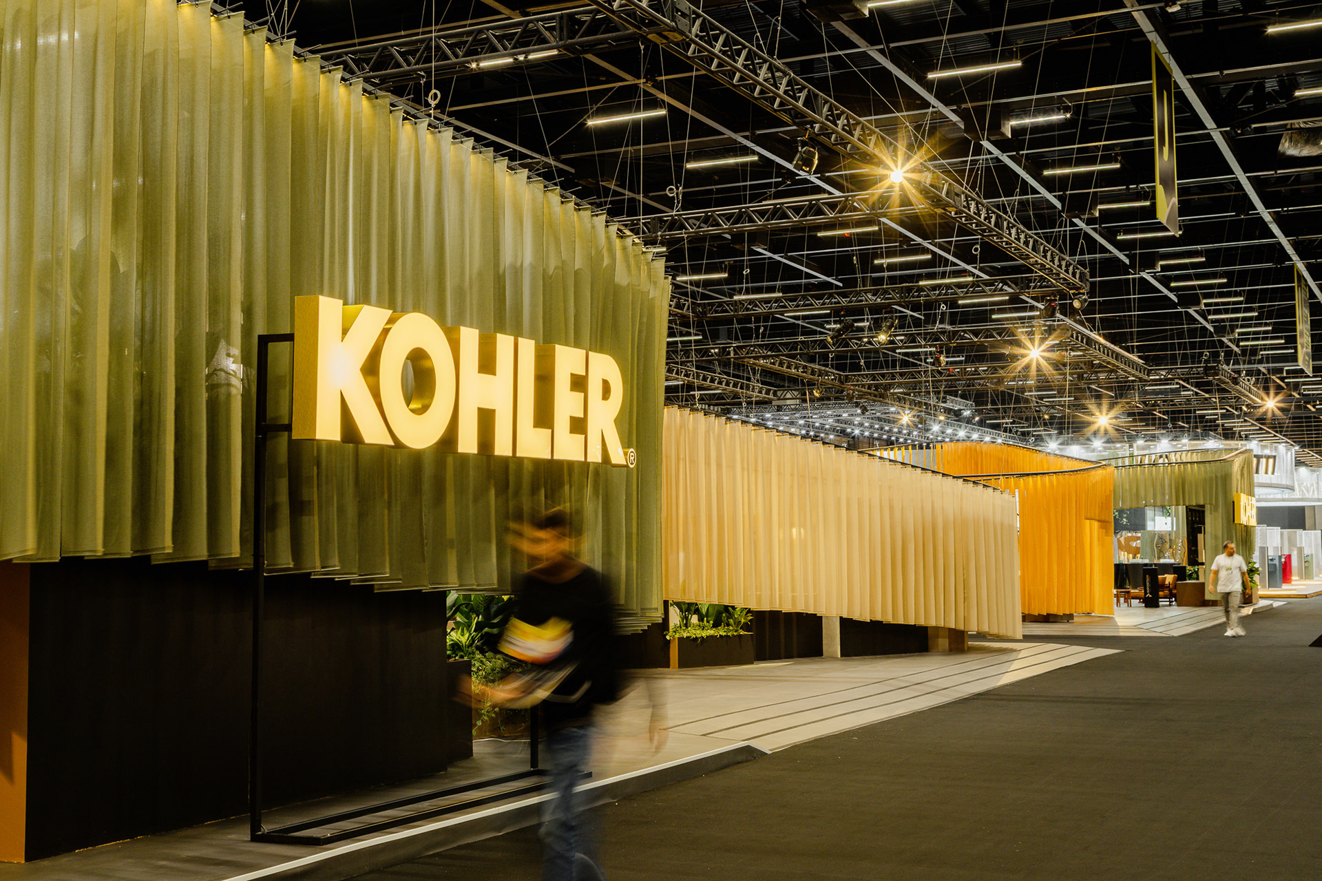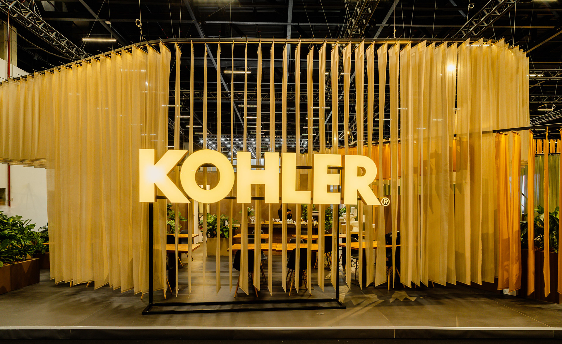 O pavilhão da Kohler para a Expo Revestir 2025 — principal evento de acabamentos da construção civil no Brasil — ocupou uma área total de 1.000 m², distribuída em dois lotes: um de 600 m² e outro de 400 m². A proposta parte de uma imersão no universo da marca, considerando sua presença nacional e internacional, e enfrentando uma condição logística desafiadora: apenas oito dias para montagem, consideravelmente menos que em outras feiras internacionais.