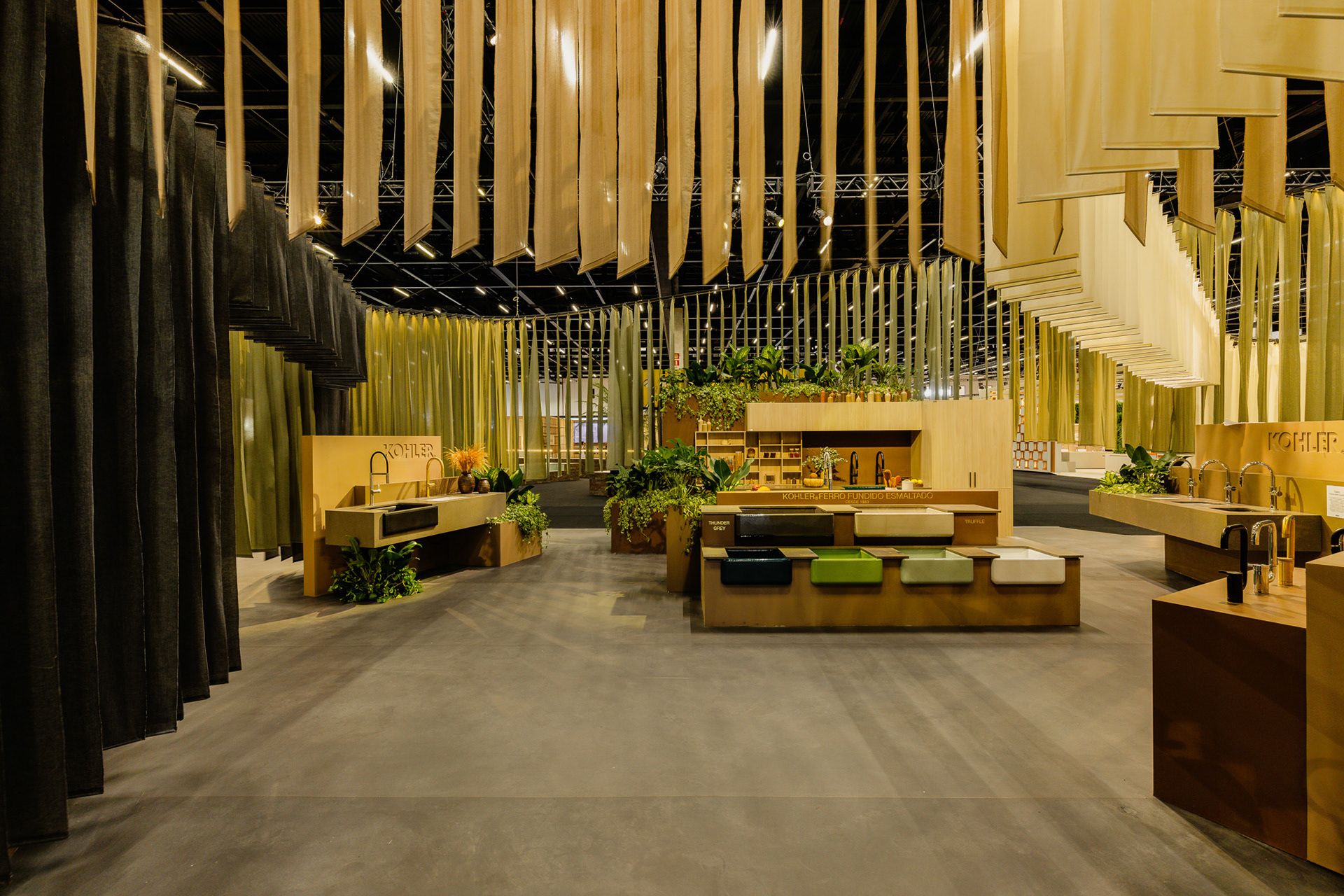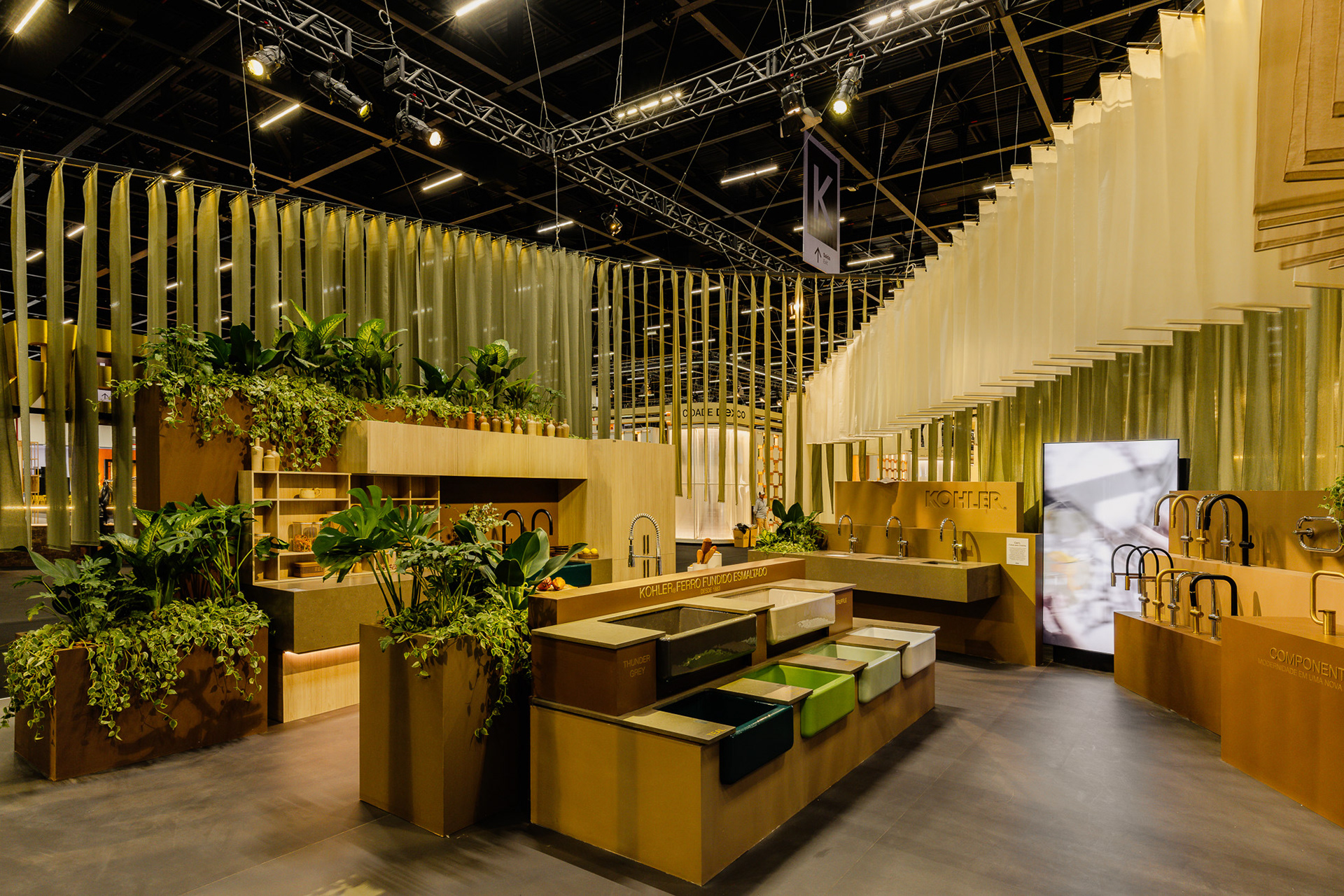 Parcerias importantes com marcas de pedras e superfícies processadas (Cosentino e Decolores), tintas (Coral), MDF (Guararapes) e armários (Kitchens) reforçam a pluralidade das possíveis aplicações dos produtos Kohler, sempre emoldurados pelo Shell, onipresente em todos os espaços.
