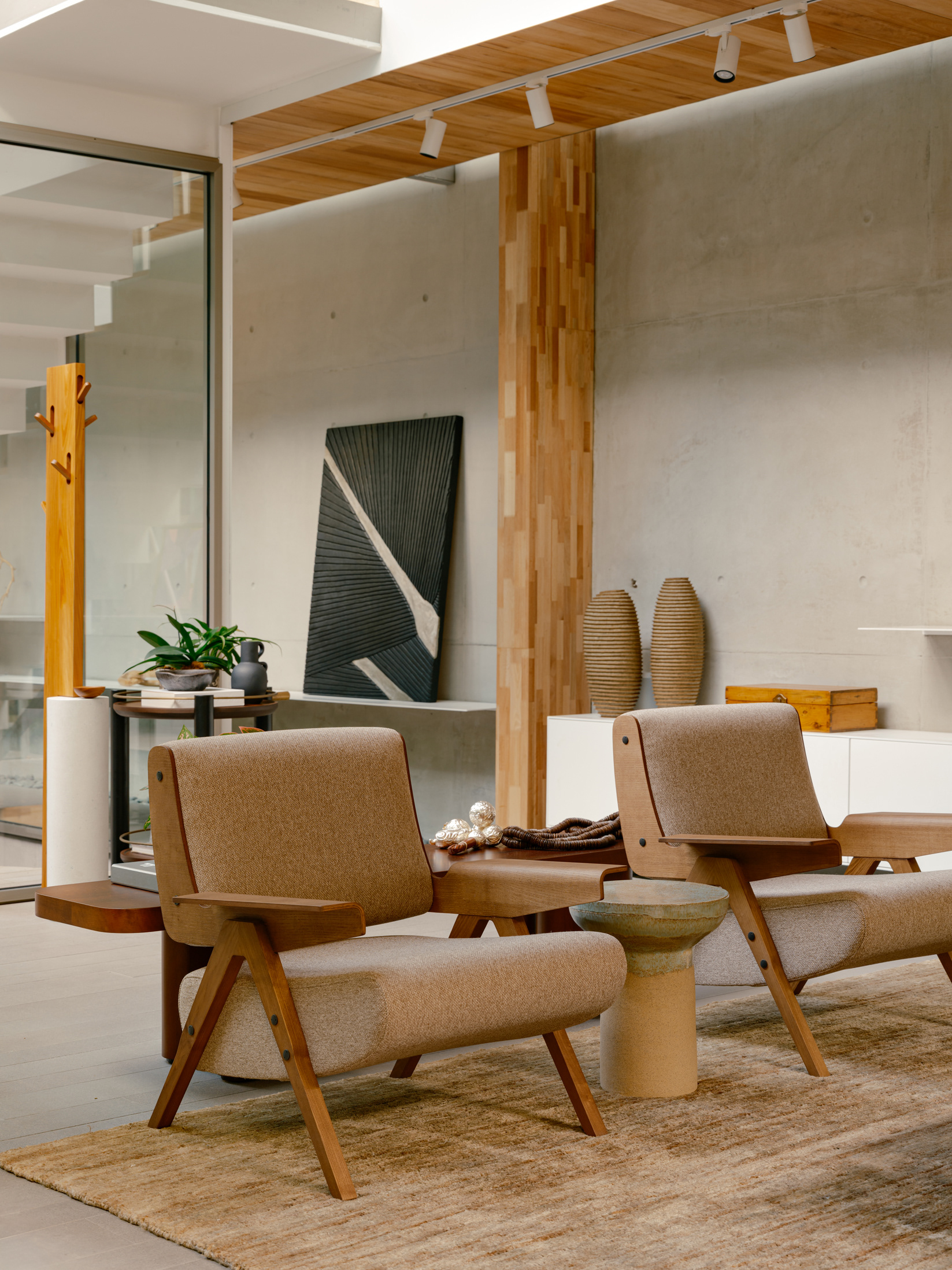 A madeira neste projeto foi usada de maneira a ressaltar a leveza estrutural e também sua bela característica de cor e textura.