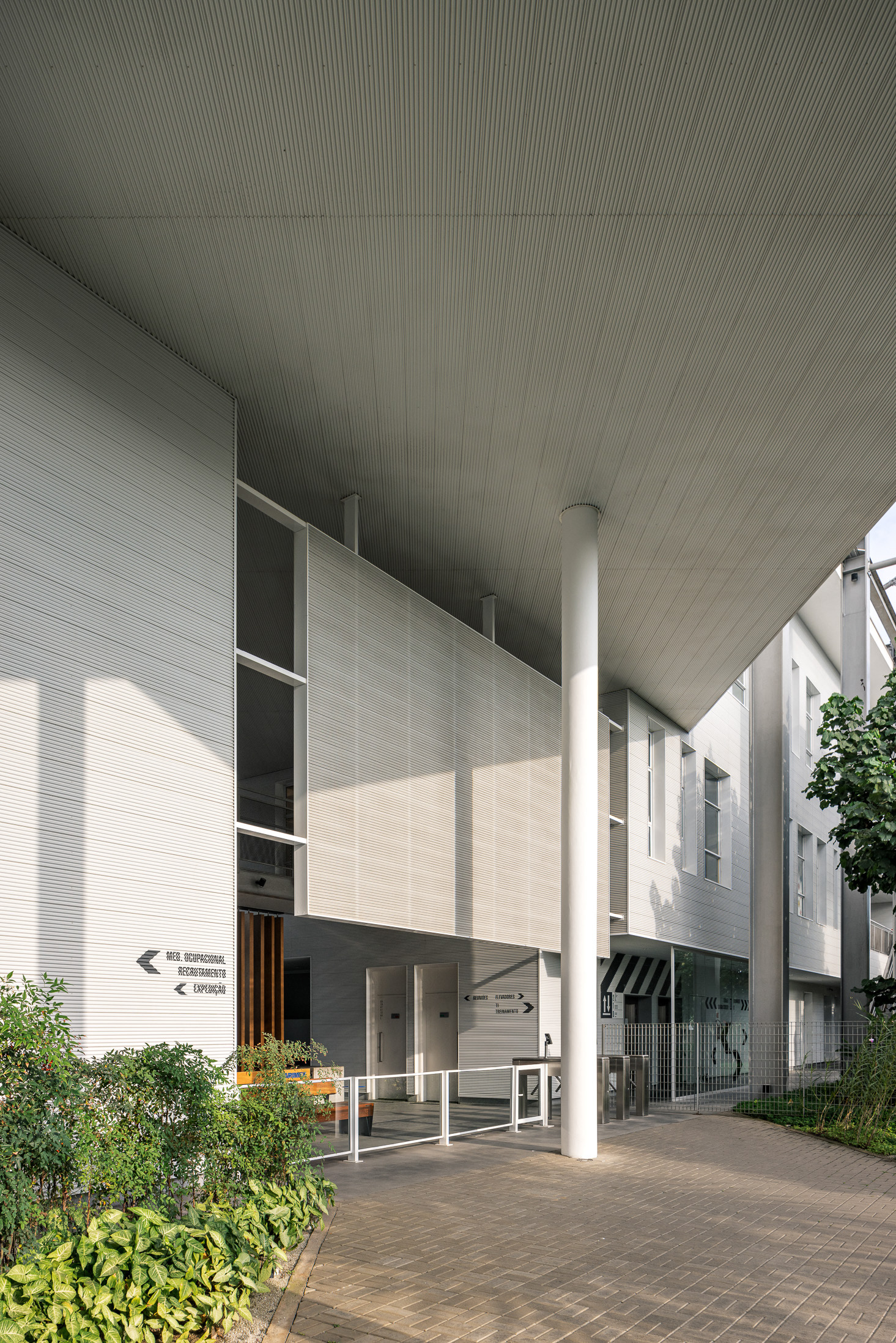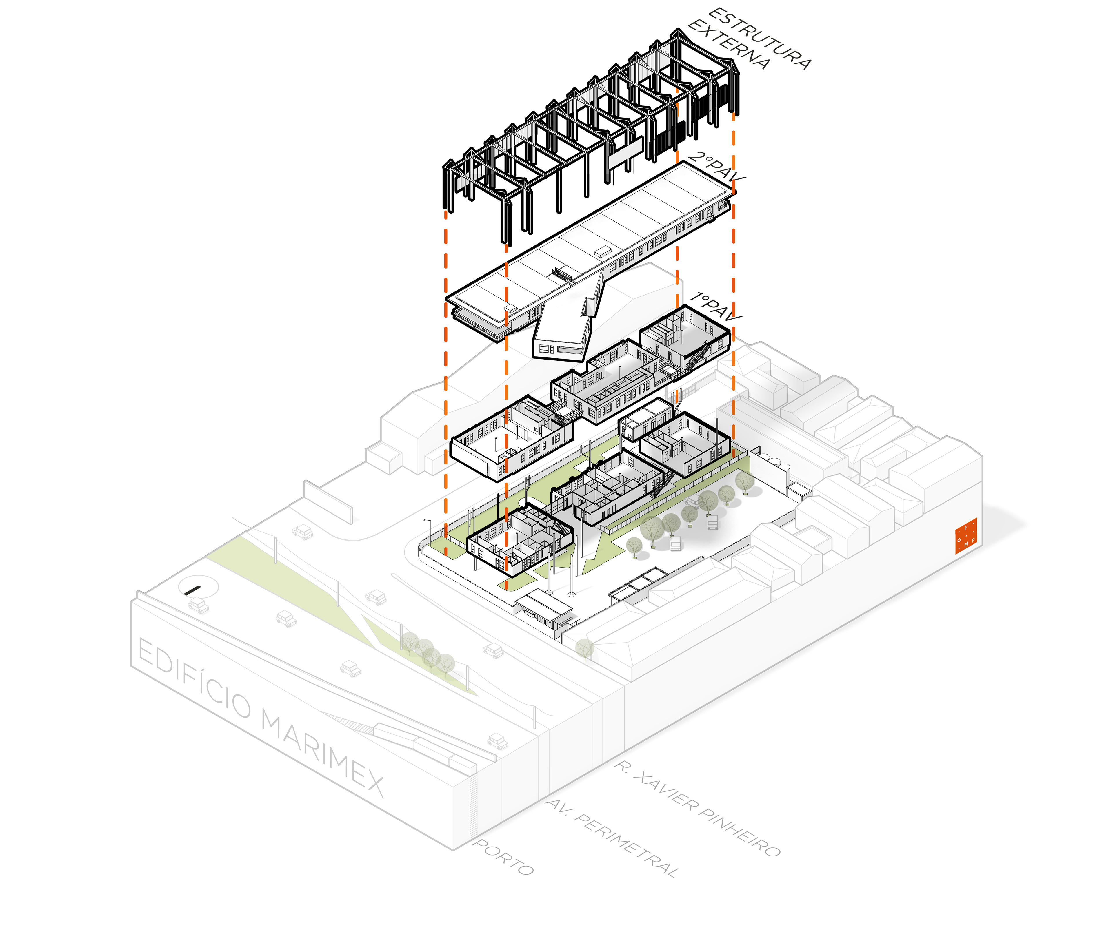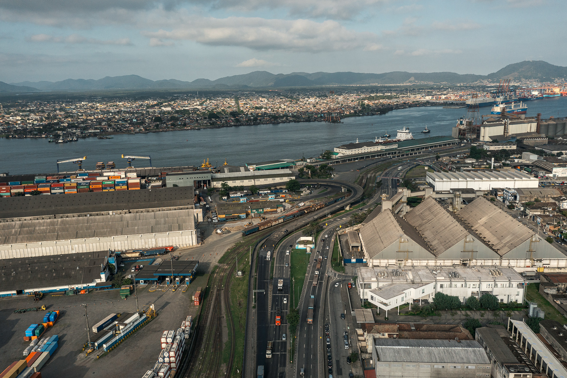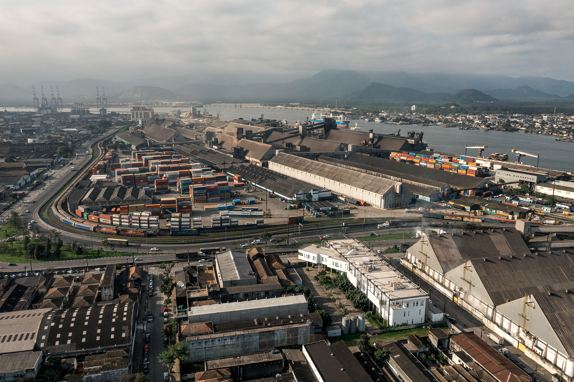 Localizado ao lado do porto de Santos, este edifício traz em sua arquitetura a estética do armazém e do container, elementos intrínsecos da forma de atuação da empresa de inteligência portuária Marimex, que realiza transportes marítimos e rodoviários, entre outras atividades.