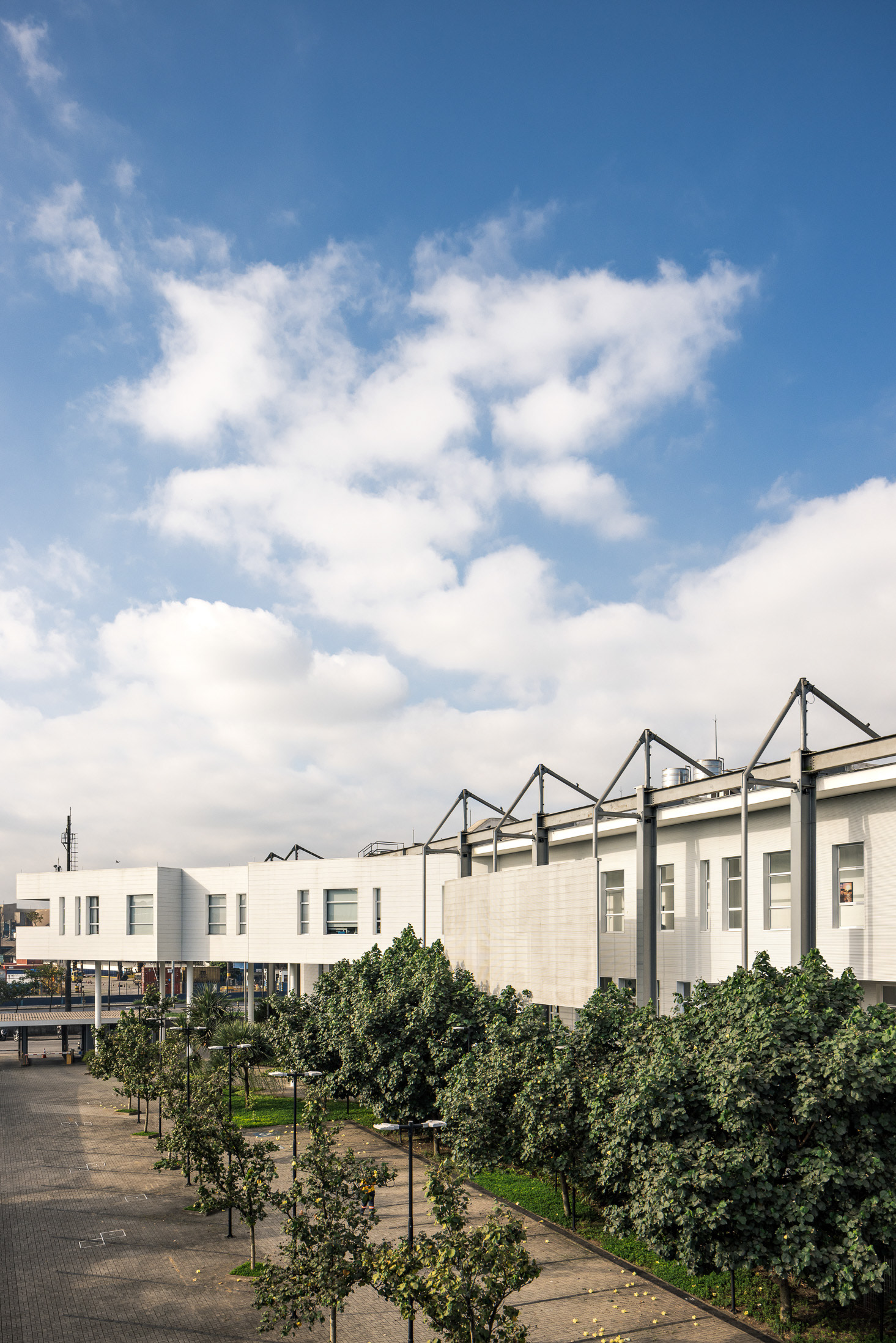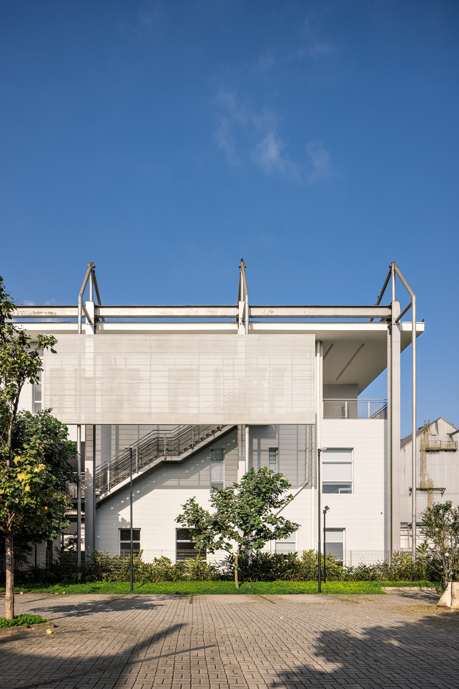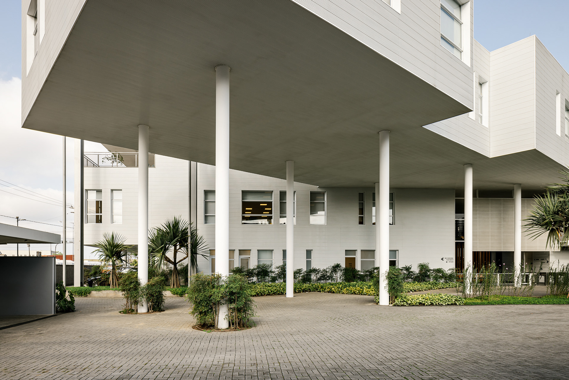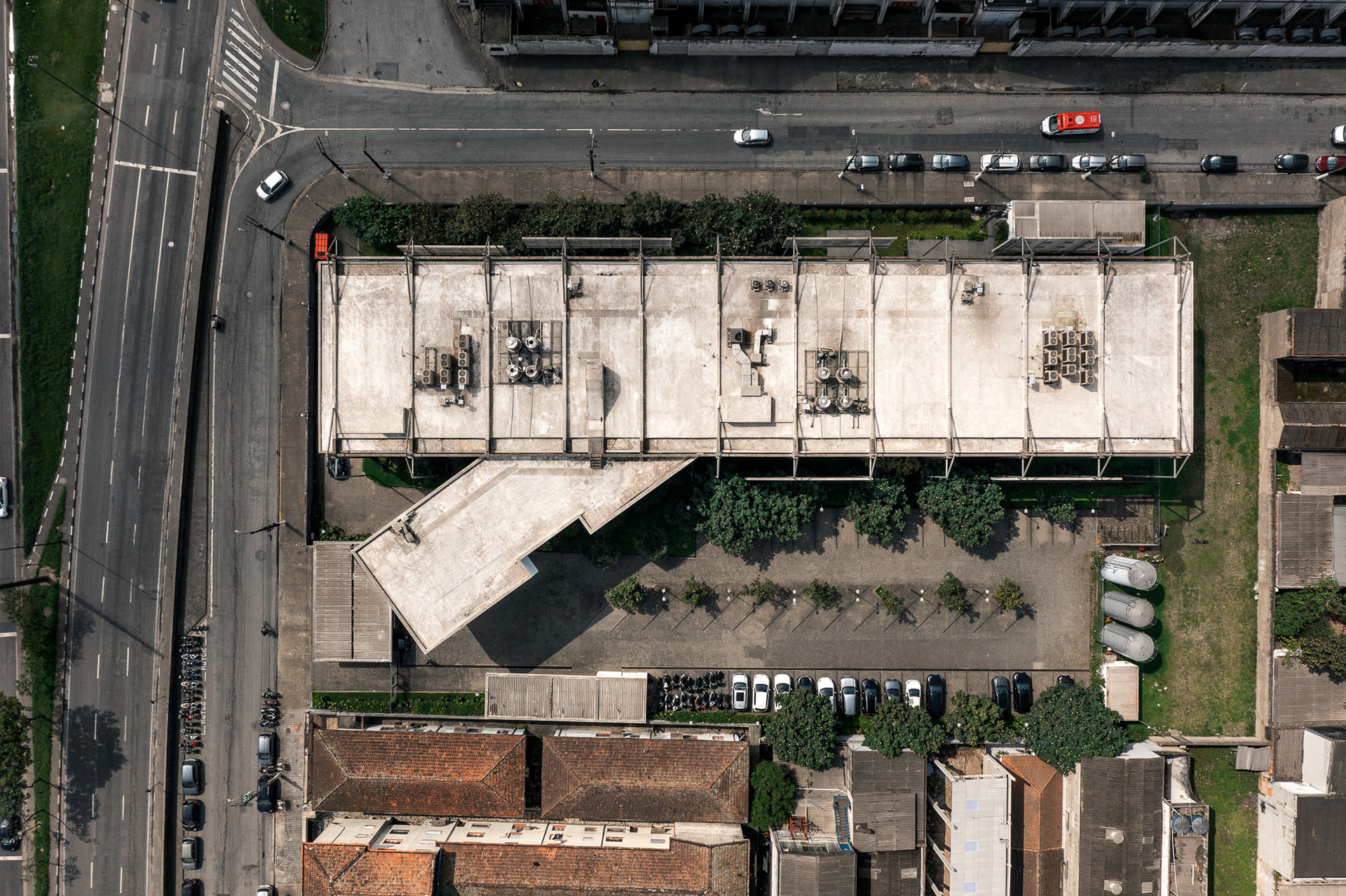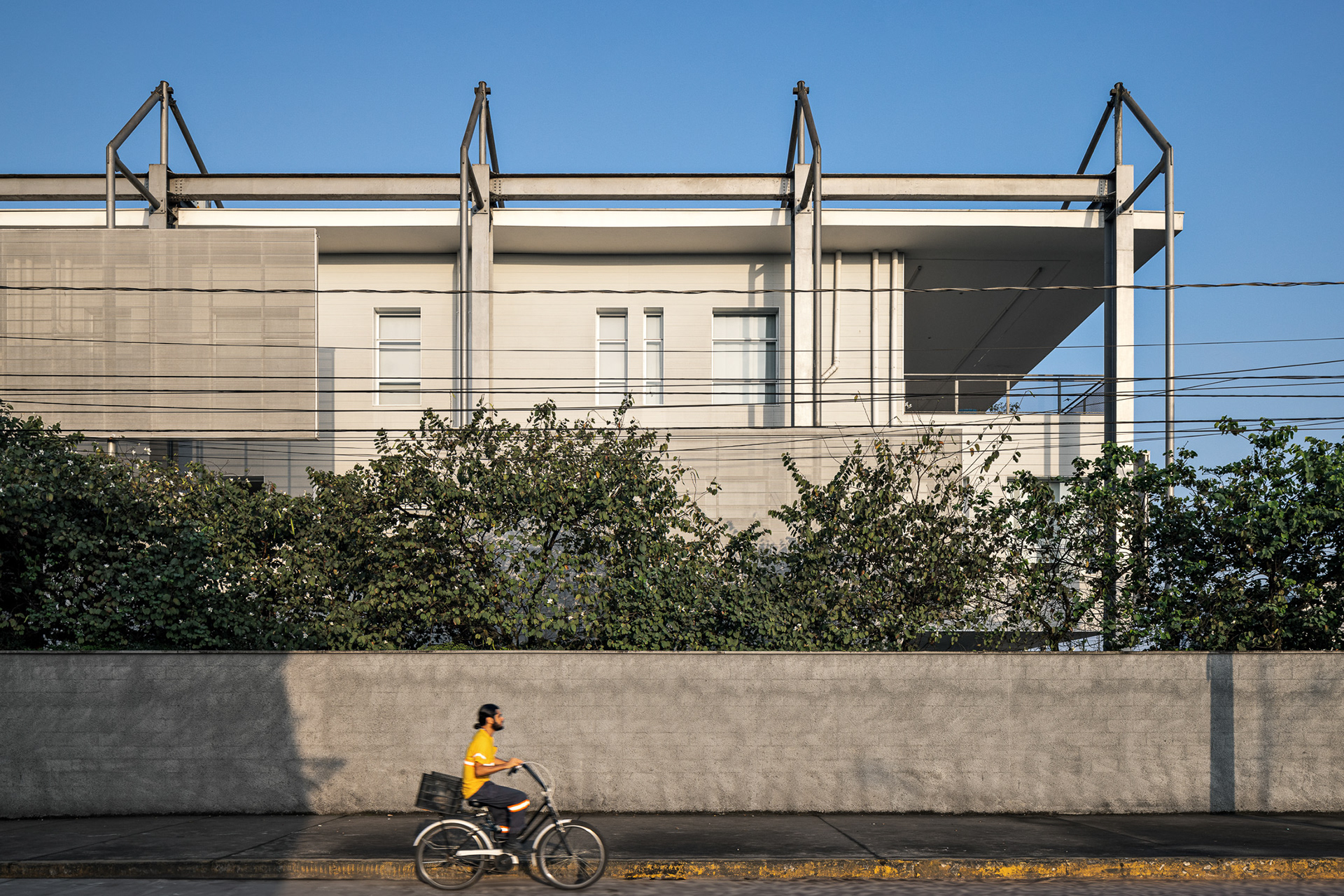 Localizado ao lado do porto de Santos, este edifício traz em sua arquitetura a estética do armazém e do container, elementos intrínsecos da forma de atuação da empresa de inteligência portuária Marimex, que realiza transportes marítimos e rodoviários, entre outras atividades.