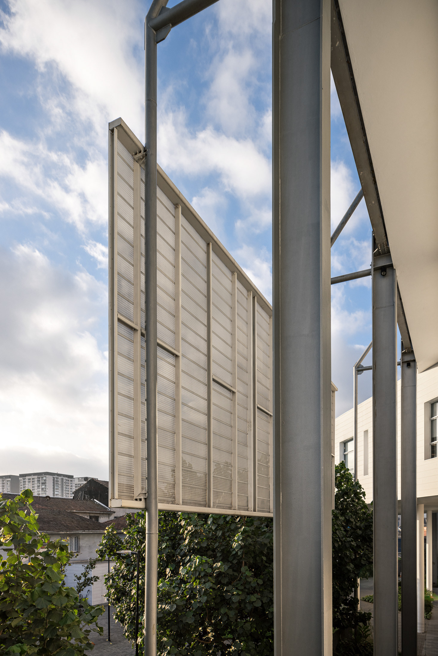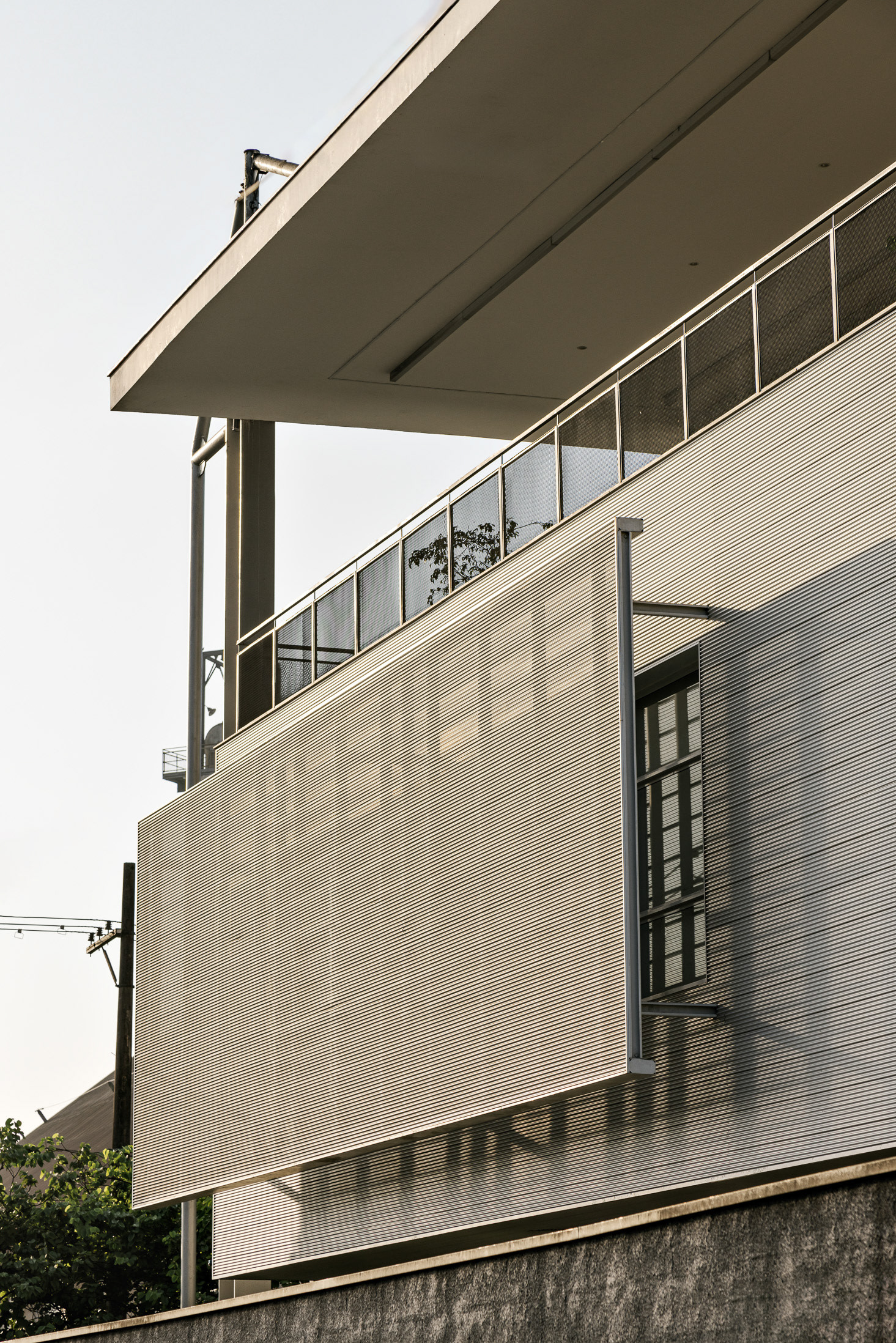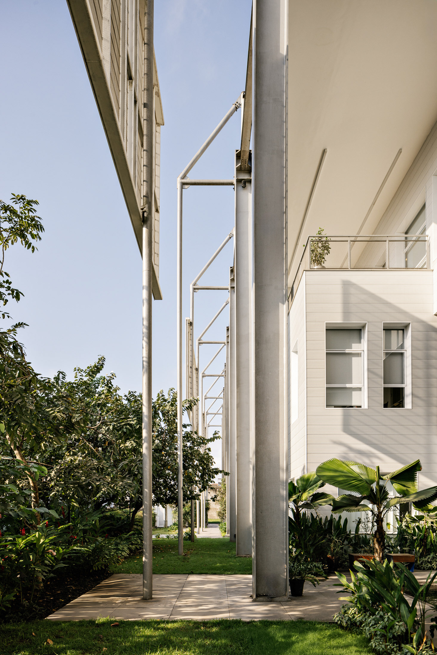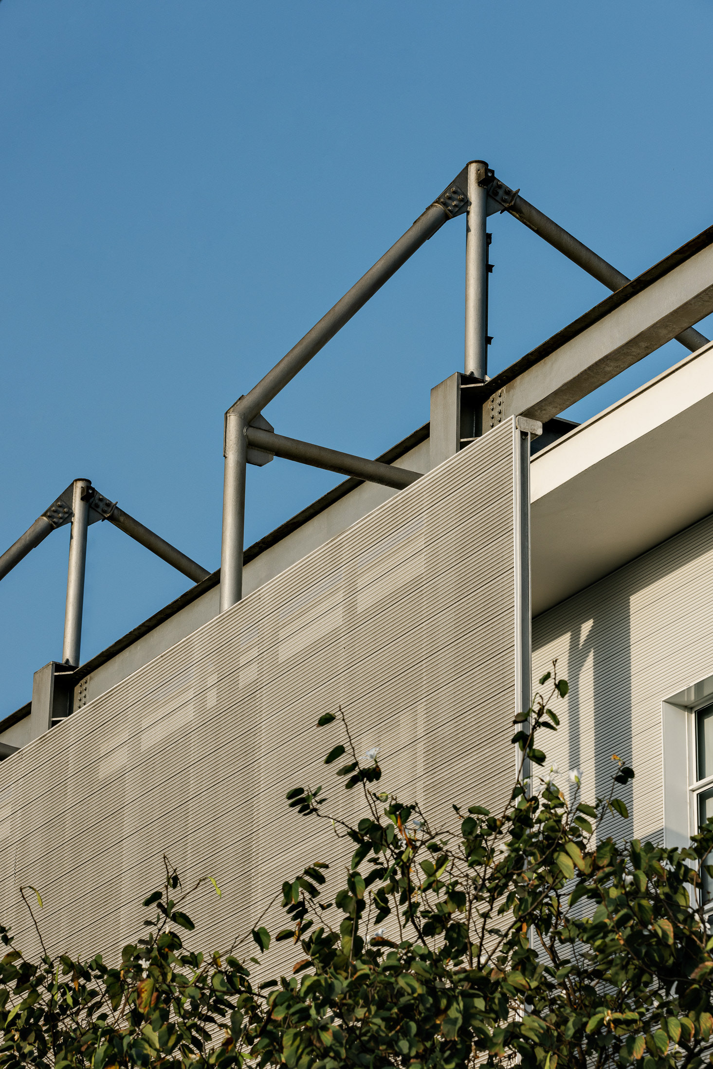 Localizado ao lado do porto de Santos, este edifício traz em sua arquitetura a estética do armazém e do container, elementos intrínsecos da forma de atuação da empresa de inteligência portuária Marimex, que realiza transportes marítimos e rodoviários, entre outras atividades.
