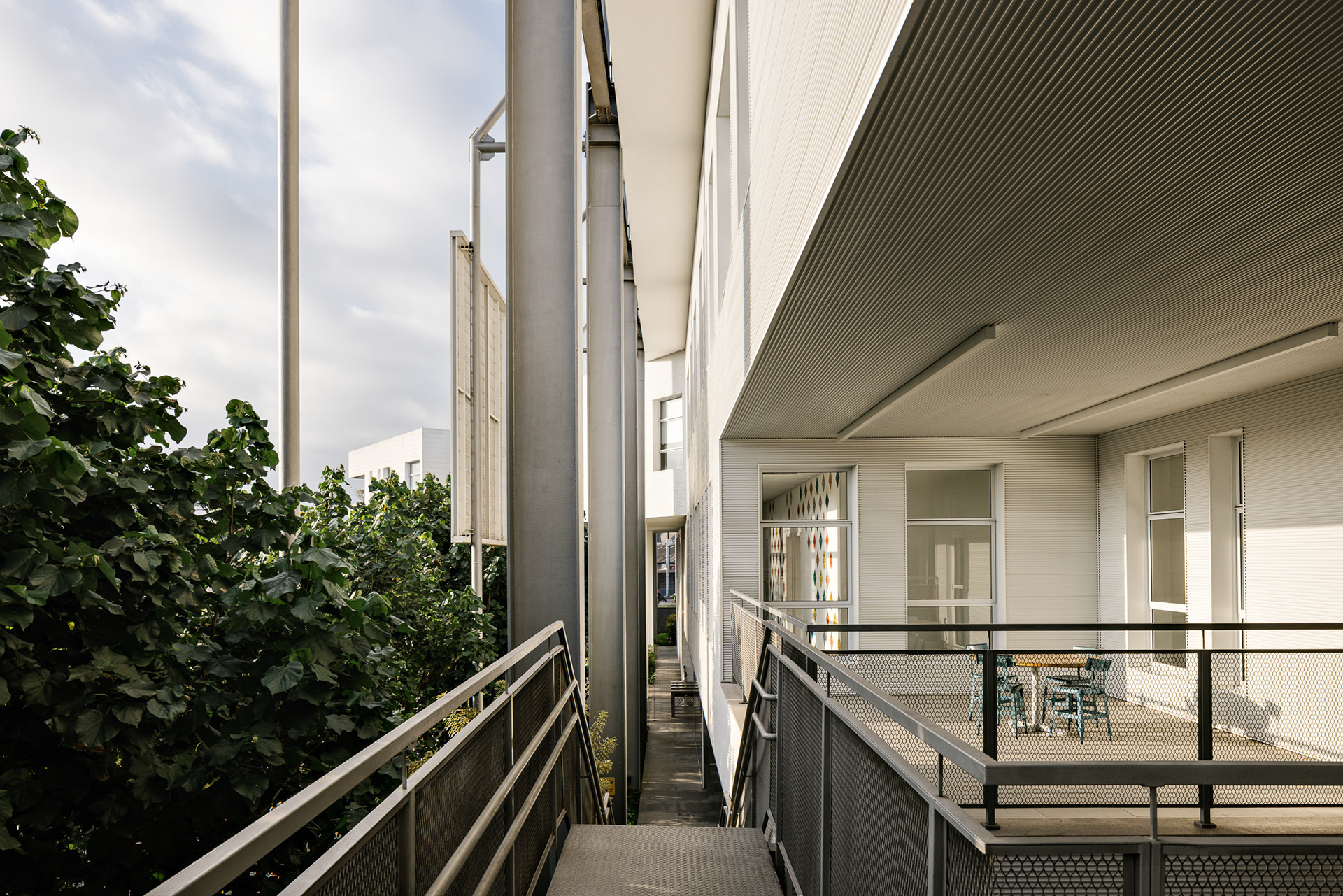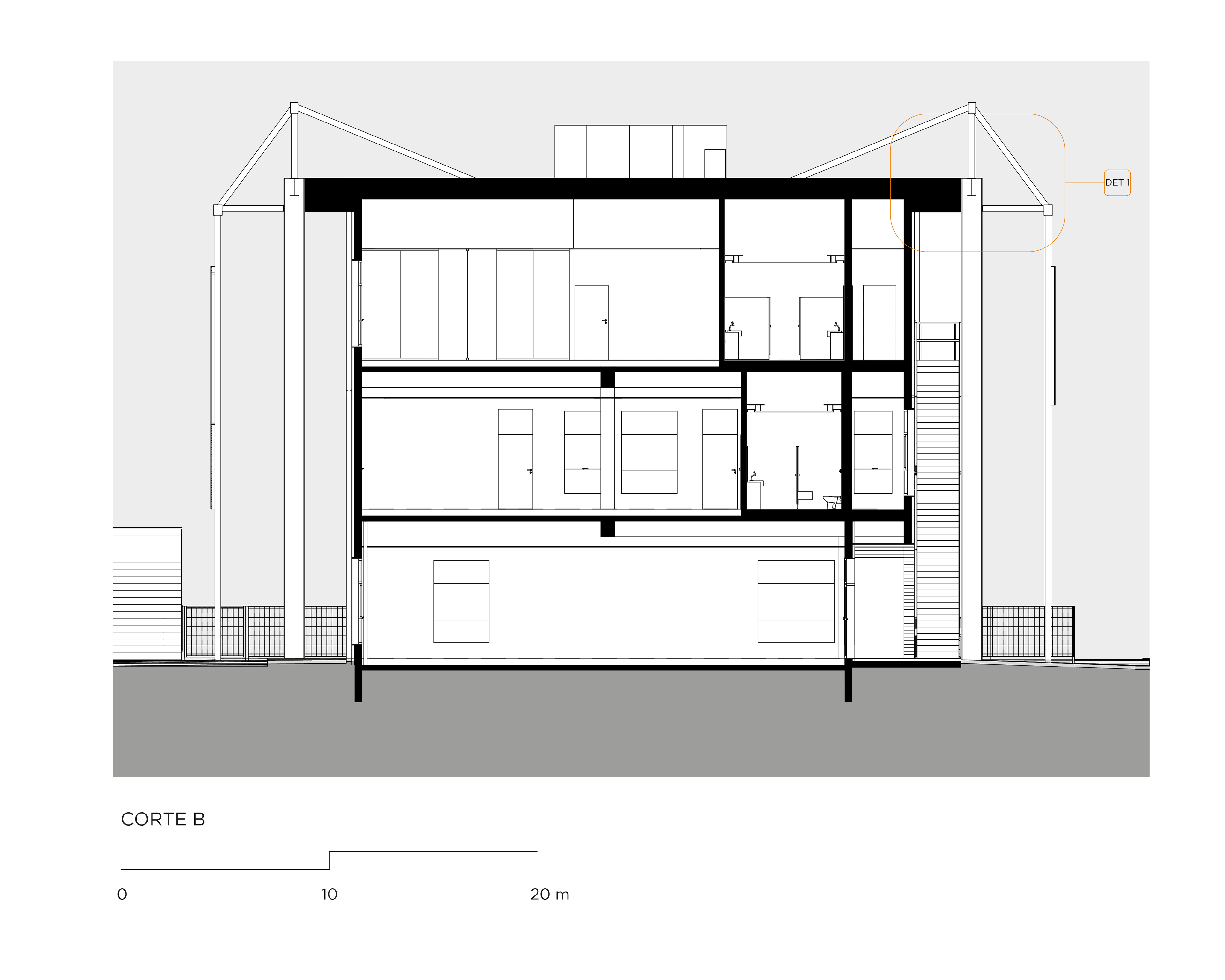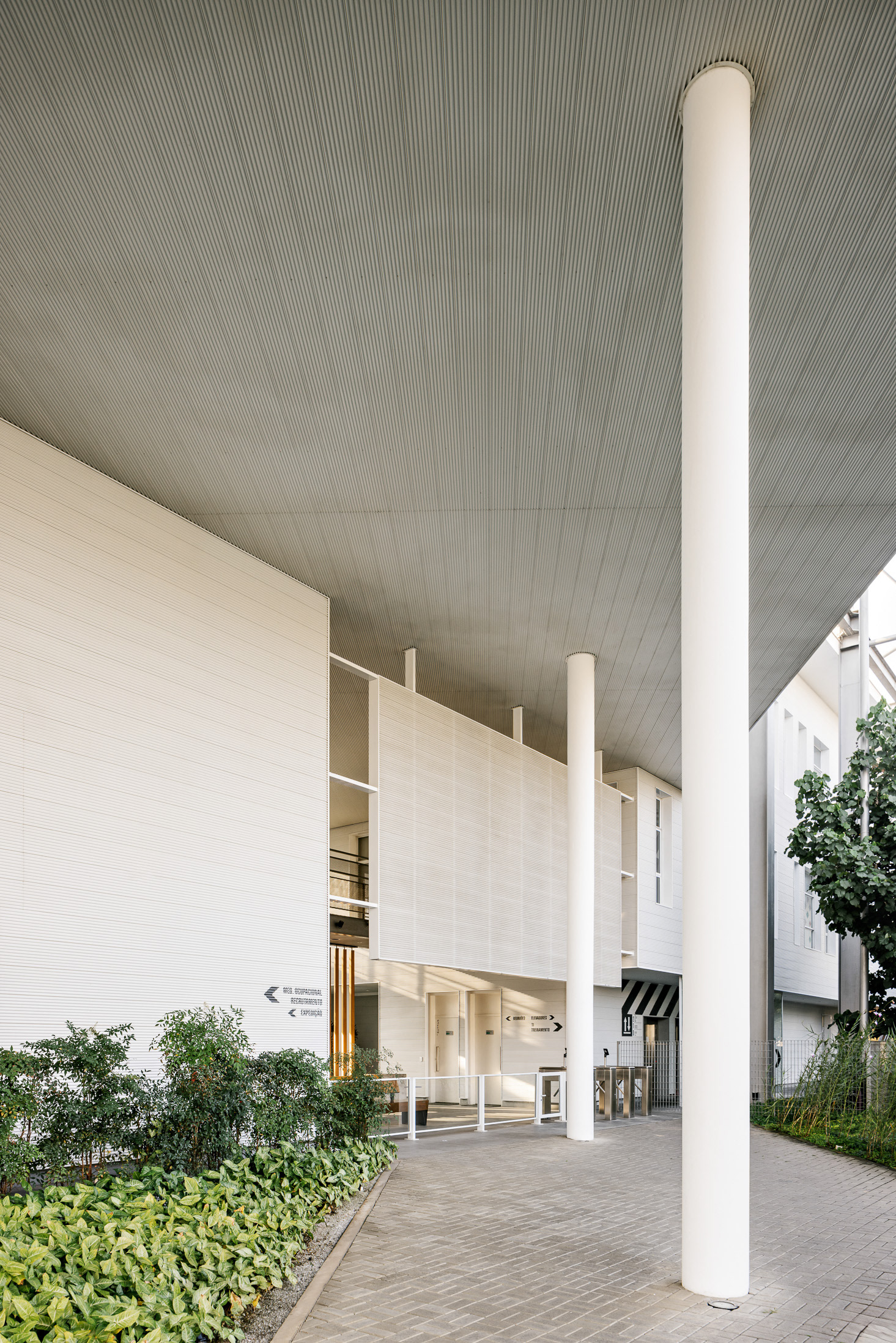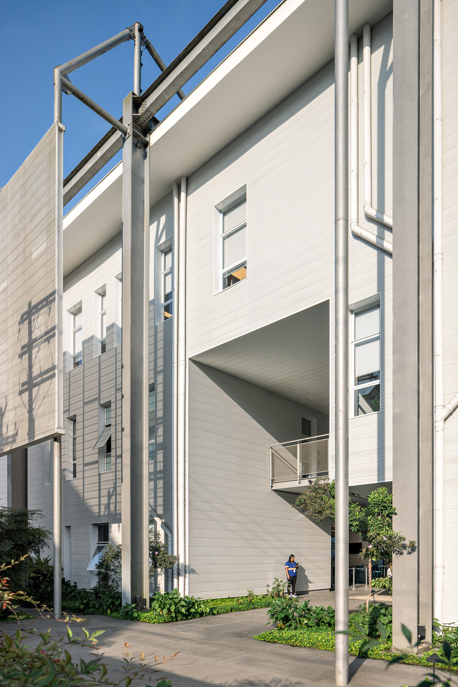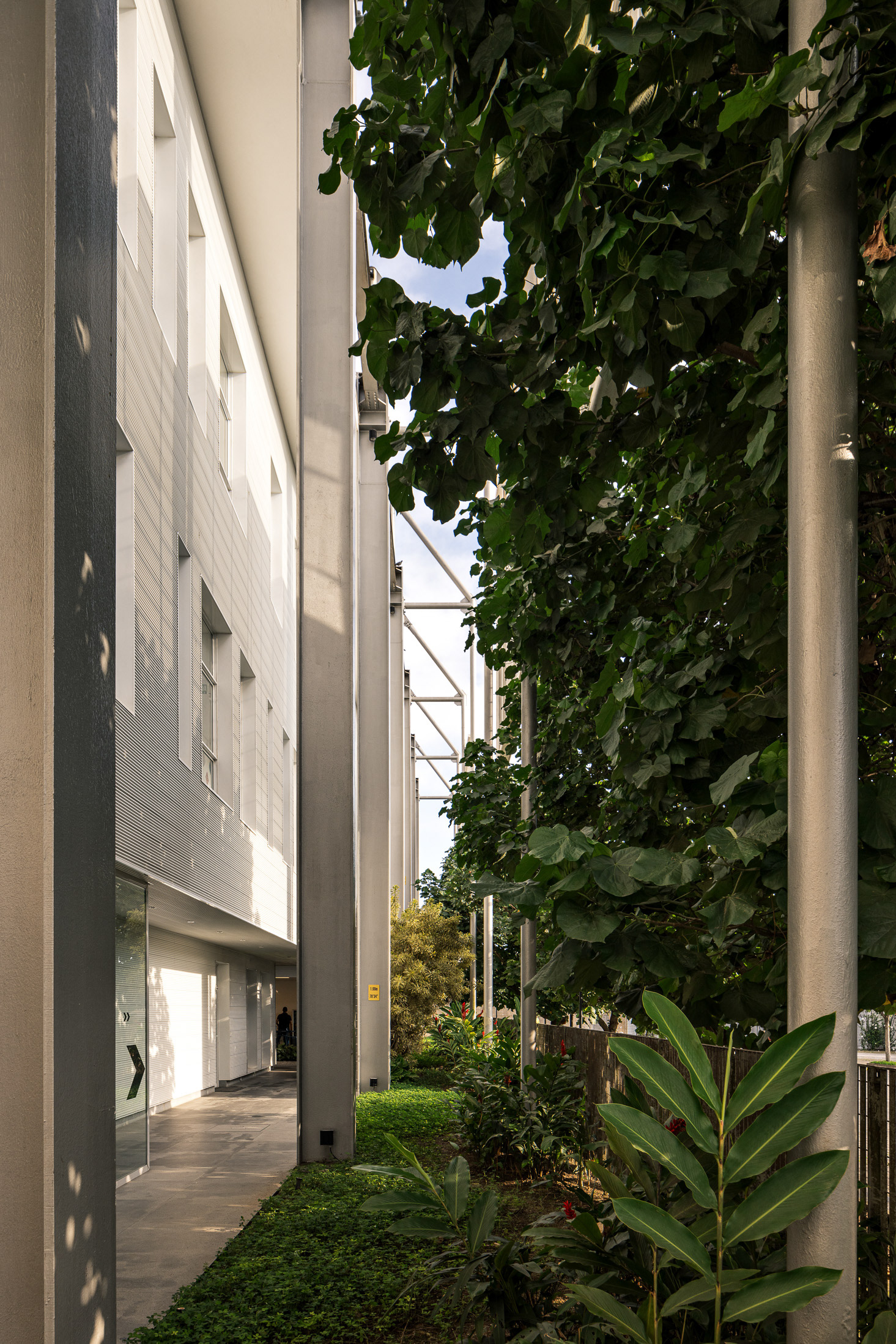 Localizado ao lado do porto de Santos, este edifício traz em sua arquitetura a estética do armazém e do container, elementos intrínsecos da forma de atuação da empresa de inteligência portuária Marimex, que realiza transportes marítimos e rodoviários, entre outras atividades.
