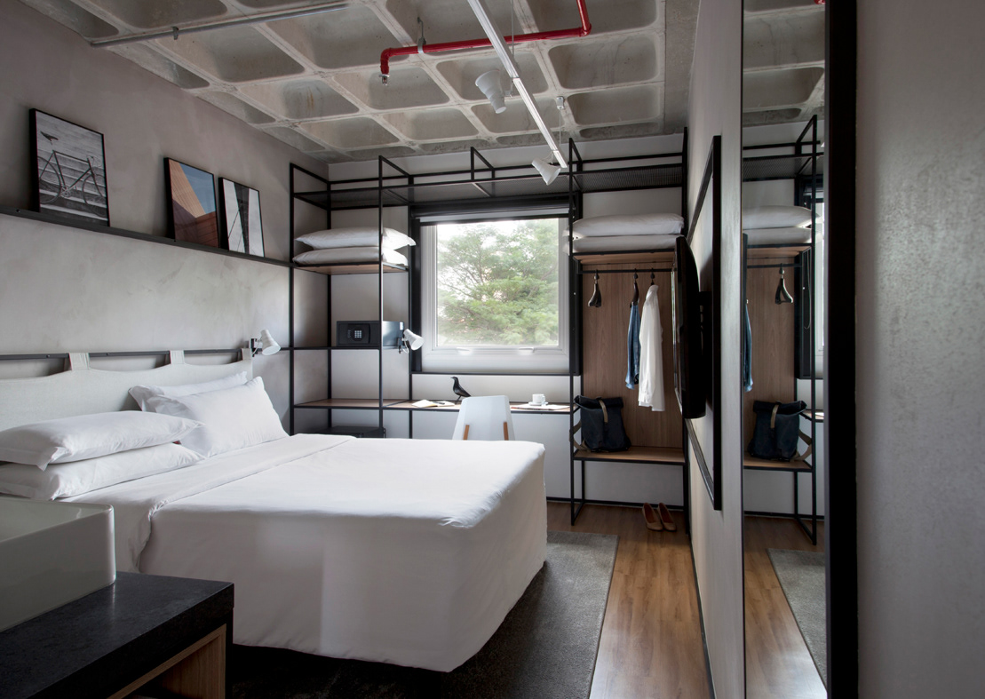 Tanto as áreas comuns quanto os quartos terão um design contemporâneo, com um toque industrial, visto em placas de metal, tinta à base de cimento e instalações expostas. A sugestão da empresa foi tornar os quartos mais amigáveis ao usuário, com um visual moderno e casual.