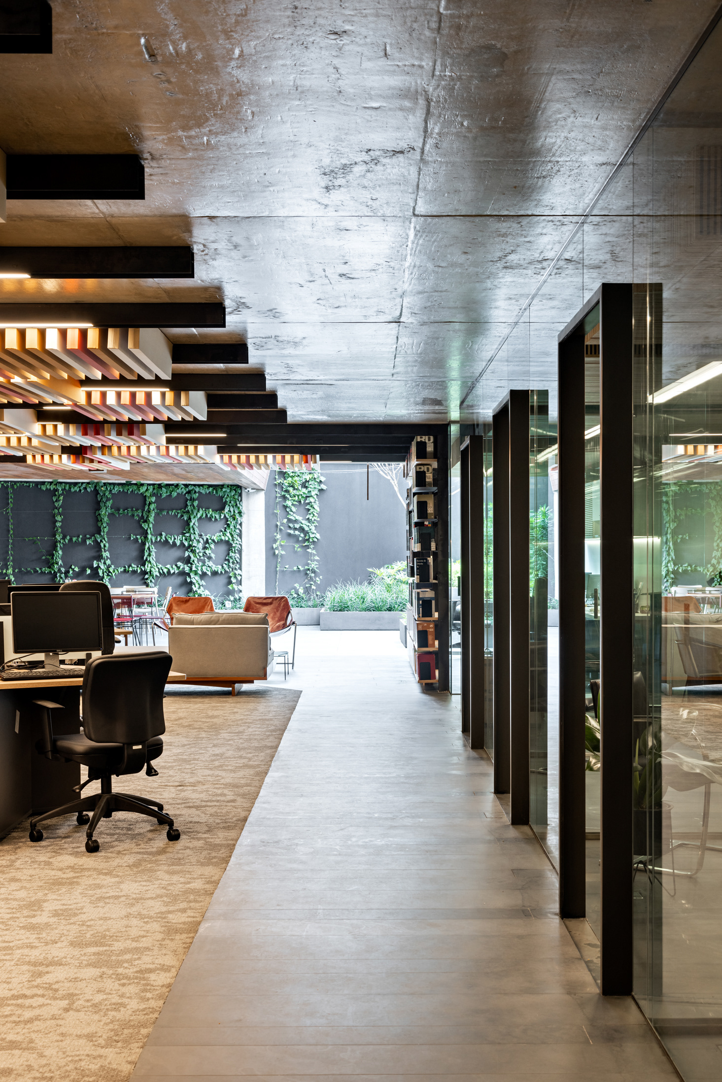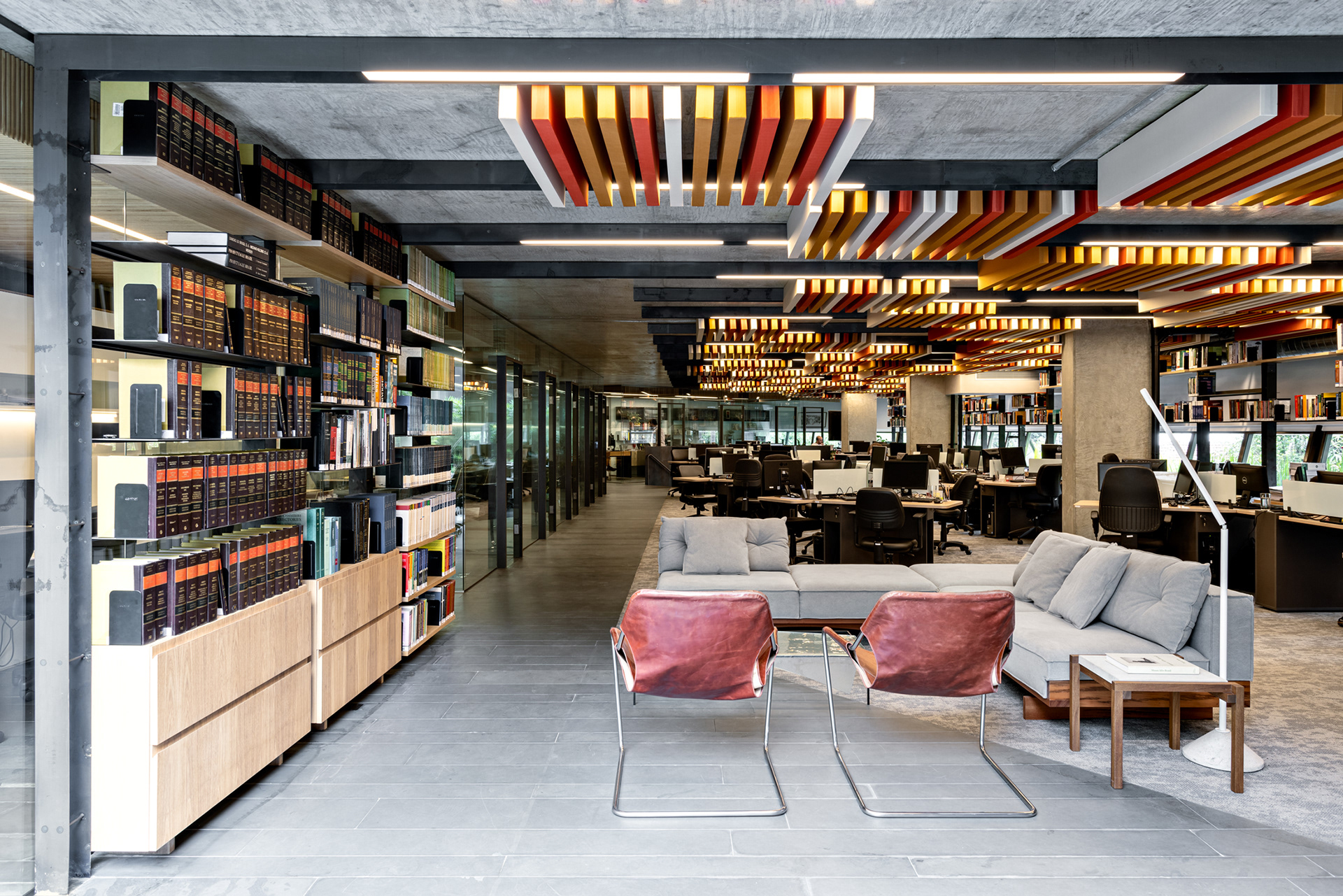 Este escritório de advocacia localizado no icônico edifício Corujas, em São Paulo, um projeto também do escritório FGMF Arquitetos. Diferente dos prédios de escritórios convencionais, este edifício organiza diversos escritórios ao redor de jardins, terraços cobertos e descobertos, criando um ambiente único e agradável.