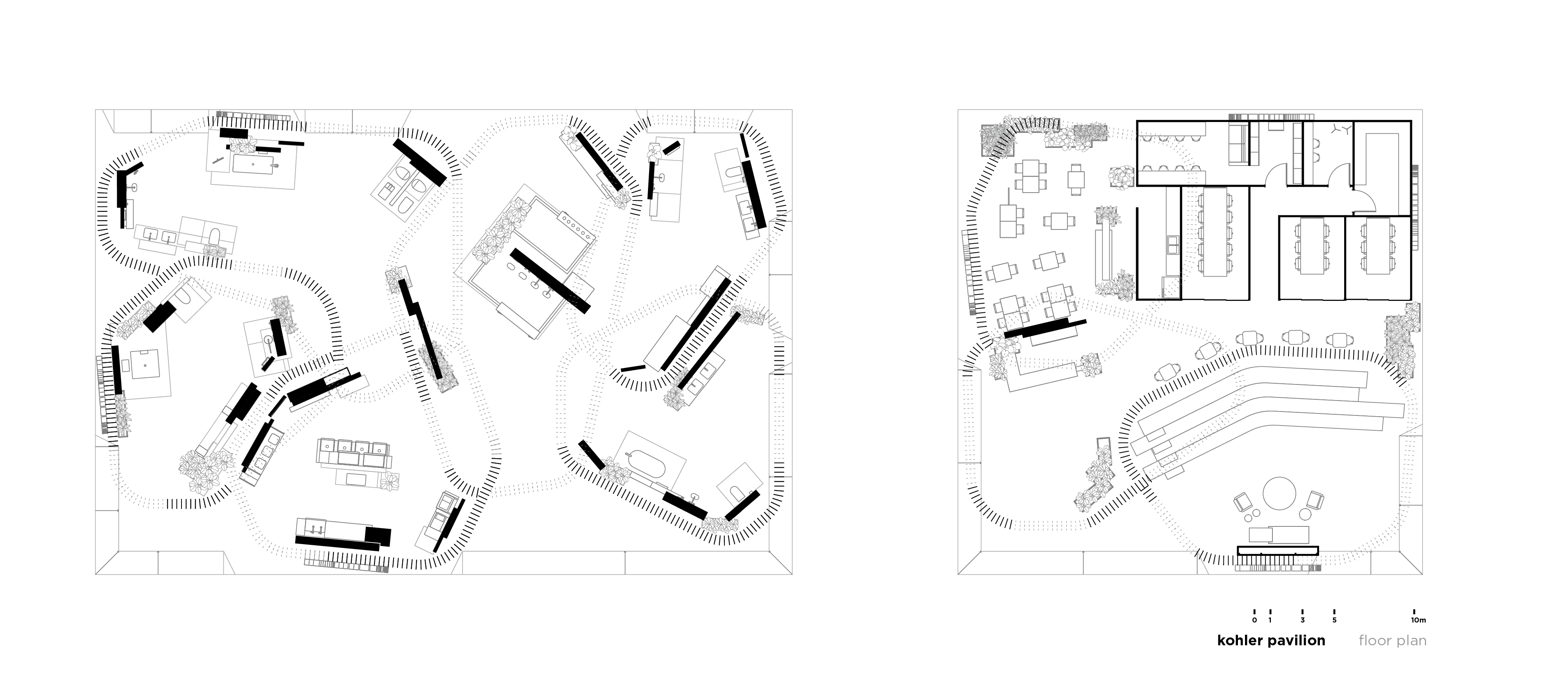 LED strips and carefully designed overhead lighting, installed at a height of 6 meters, enhance the sculptural character of this temporary installation. Together with the interior design and product displays, they consolidate a pavilion that not only showcases Kohler’s products, but also communicates the brand’s values through architecture.